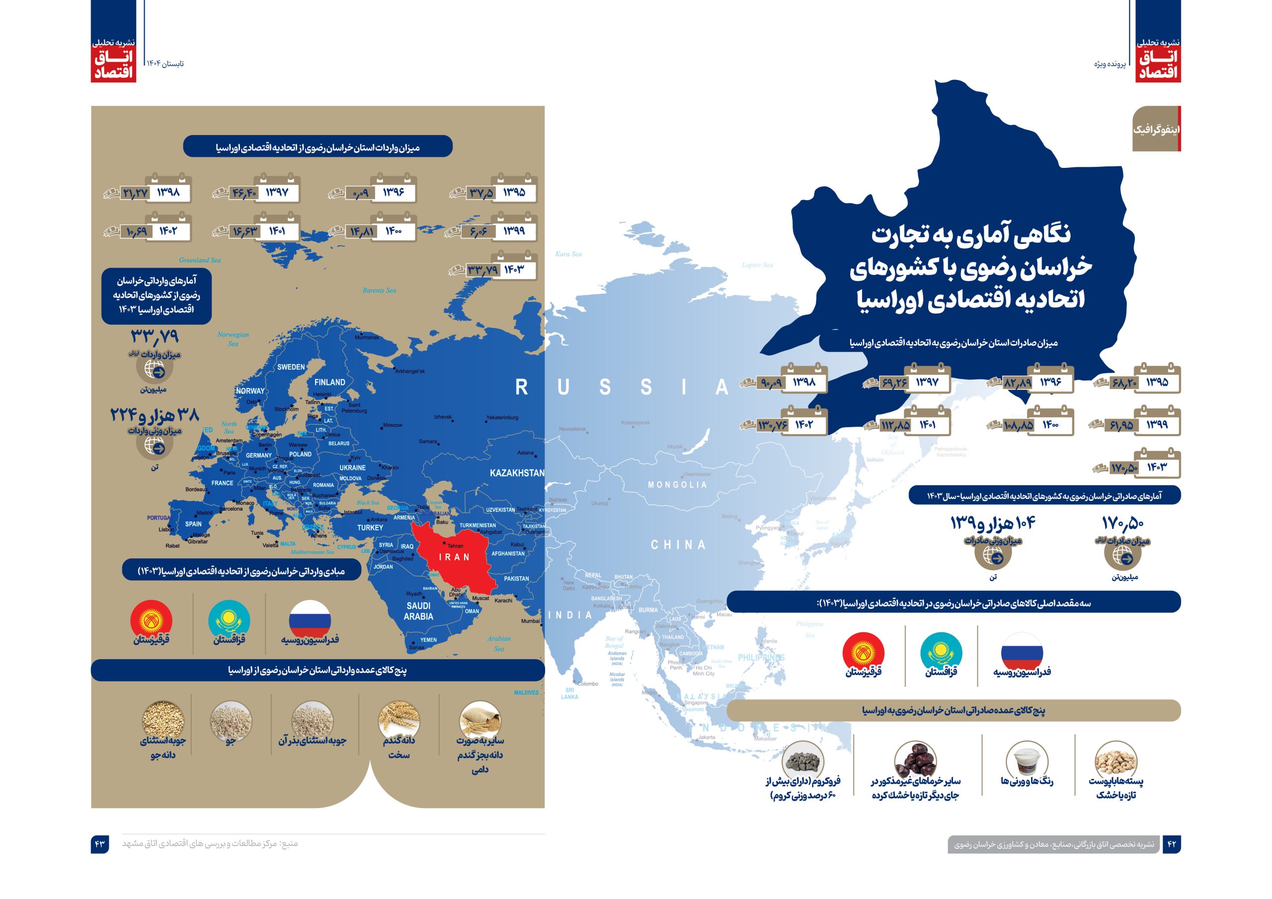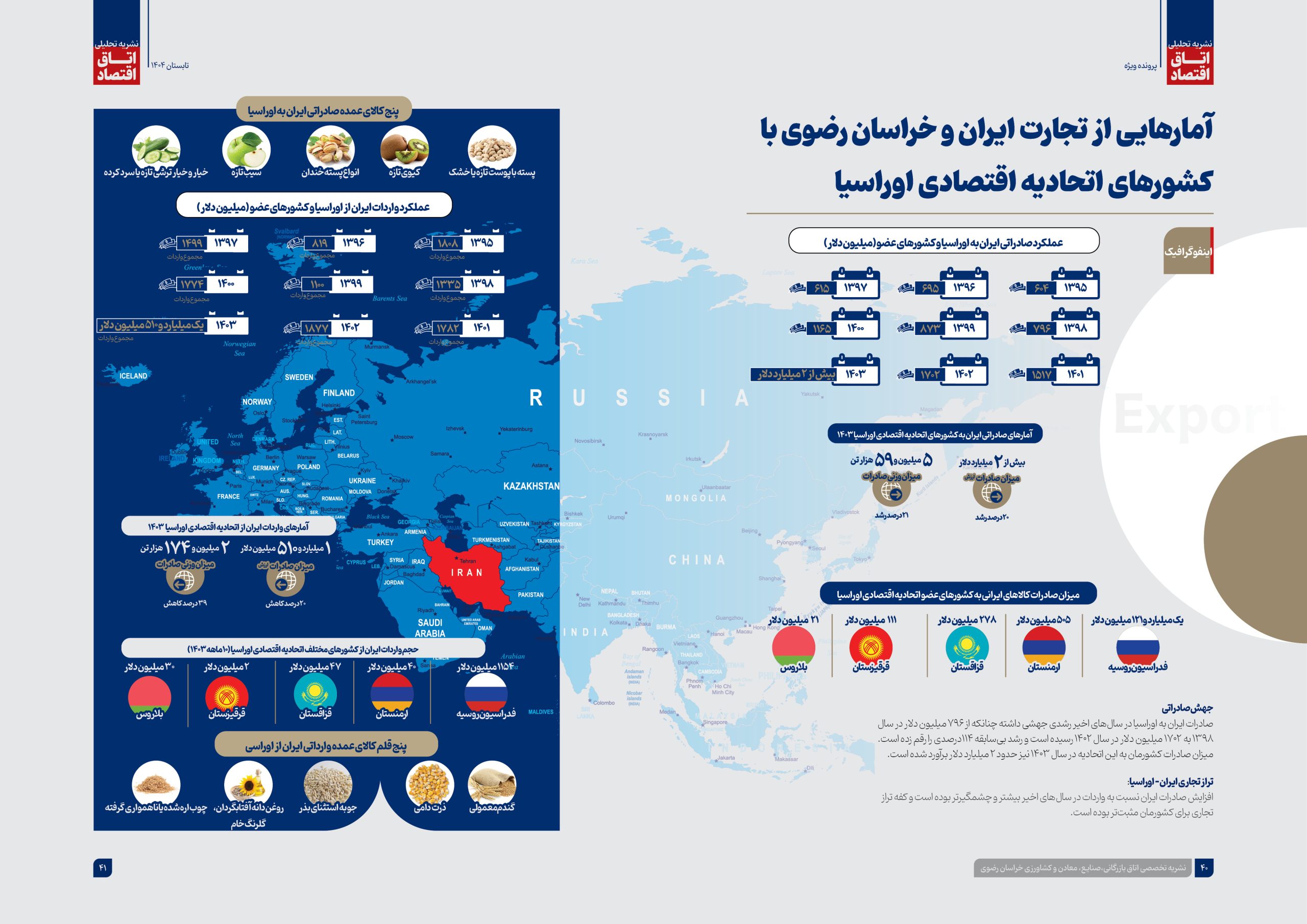 آمارهایی از تجارت ایران و خراسان رضوی با کشورهای اتحادیه اقتصادی اوراسیا
