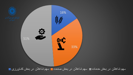 در مقابل، سهم صنعت به ۳۳.۳ درصد کاهش یافته است؛ روندی نزولی که ضعف ساختاری این بخش در جذب و تثبیت نیروی کار را نمایان می‌سازد.