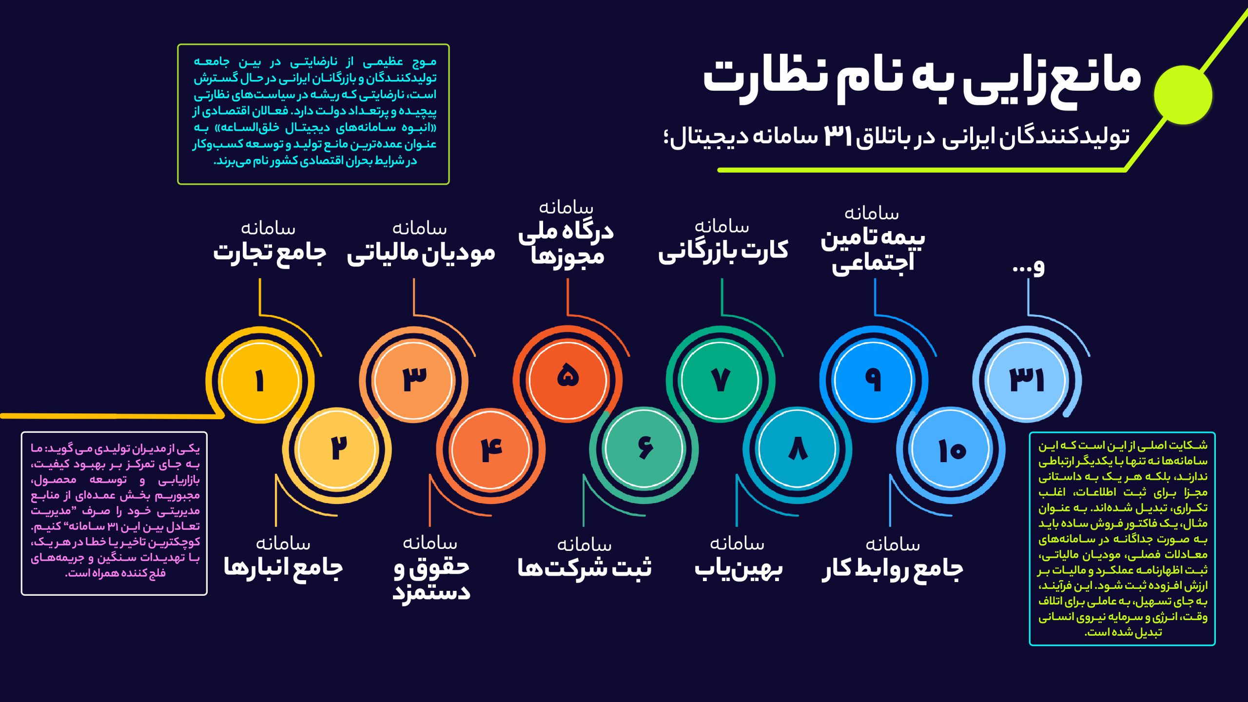 سامانه‌های نظارتی موجود، برخلاف شعار دولت‌های مختلف مبنی بر کوچک‌سازی دولت و تسهیل محیط کسب‌وکار، عملا ابزار گسترش کنترل و مداخله در اقتصاد شده‌اند.