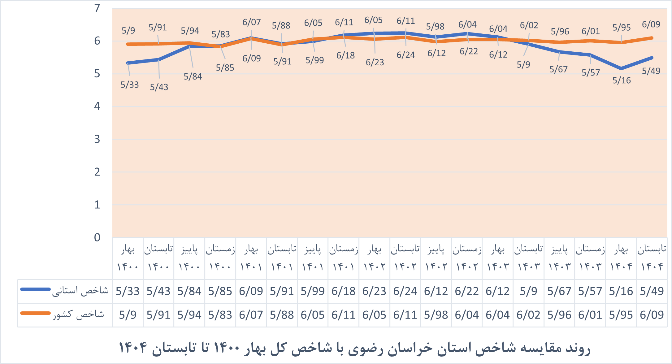 «سمیرا سبزواری»، مدیر مرکز مطالعات و بررسی‌های اقتصادی اتاق مشهد در گفت‌وگو با خبرنگار ما در تشریح جزئیات این گزارش گفت: بر اساس نتایج سی‌وششمین دوره پایش ملی محیط کسب‌وکار، شاخص این طرح برای استان خراسان رضوی در تابستان ۱۴۰۴ عدد ۵.۴۹ را نشان می‌دهد (در این ارزیابی، عدد ۱۰ بیانگر نامساعدترین وضعیت است). این رقم نسبت به فصل بهار ۱۴۰۴ با میانگین ۵.۱۶، بیانگر افت ۶.۳۹ درصدی و در نتیجه نامساعدتر شدن وضعیت محیط کسب‌وکار استان است. با این حال، مقایسه با دوره مشابه سال گذشته (تابستان ۱۴۰۳ با میانگین ۵.۹۰)حاکی از بهبود ۶.۹۸ درصدی در شاخص استان می‌باشد.