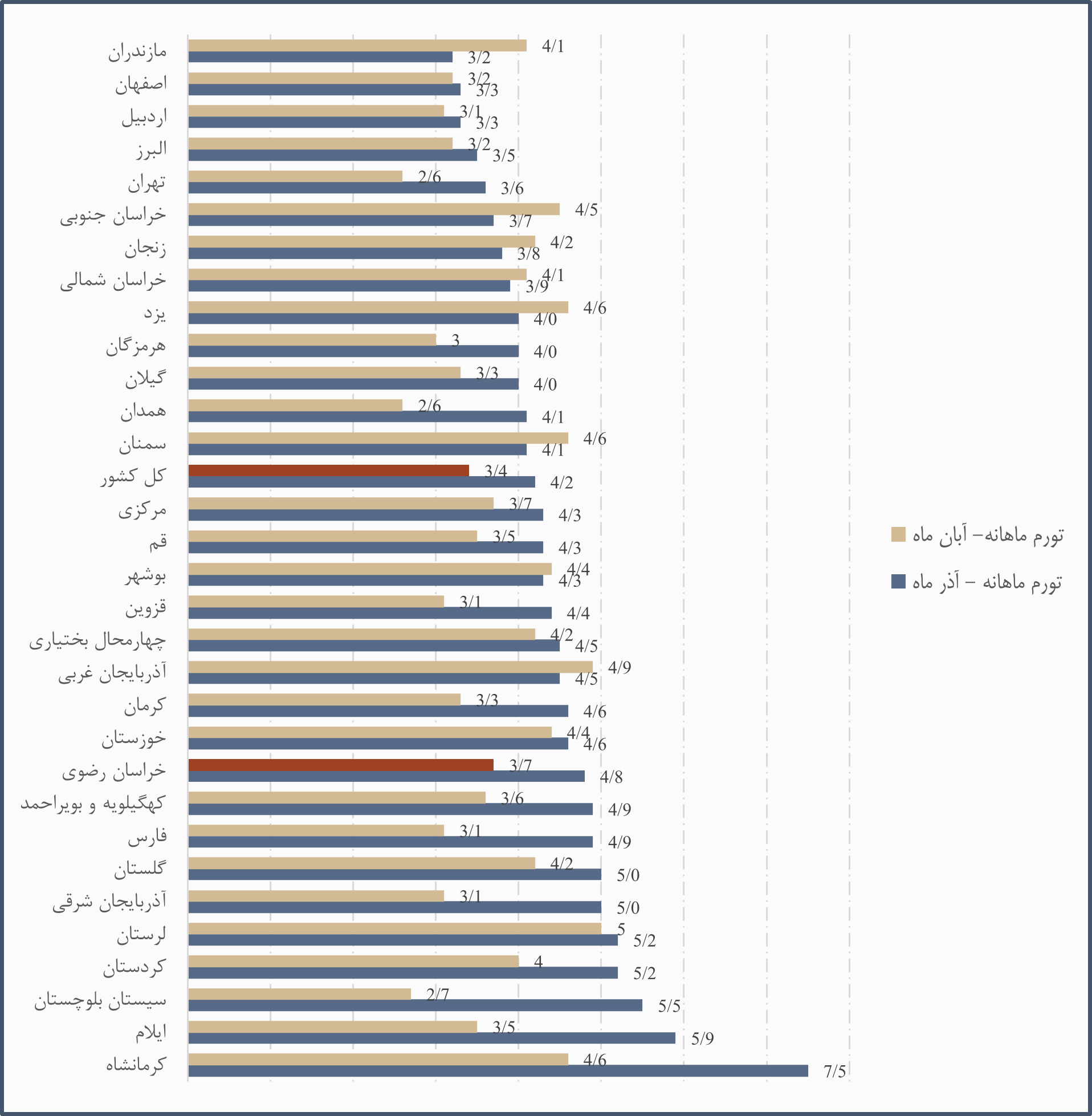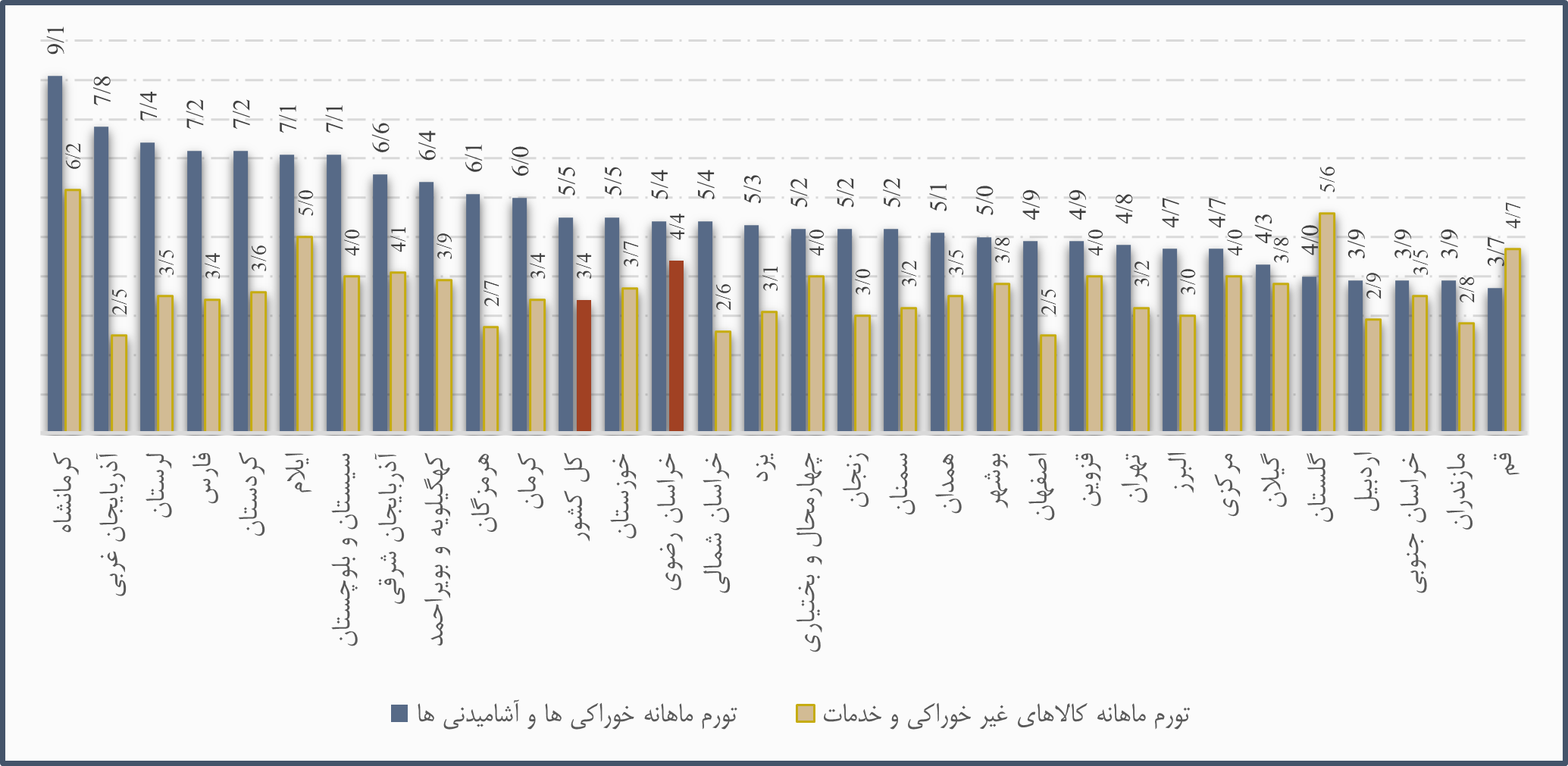 تورم نقطهبهنقطه خراسان رضوی، بالاتر از میانگین کشوری