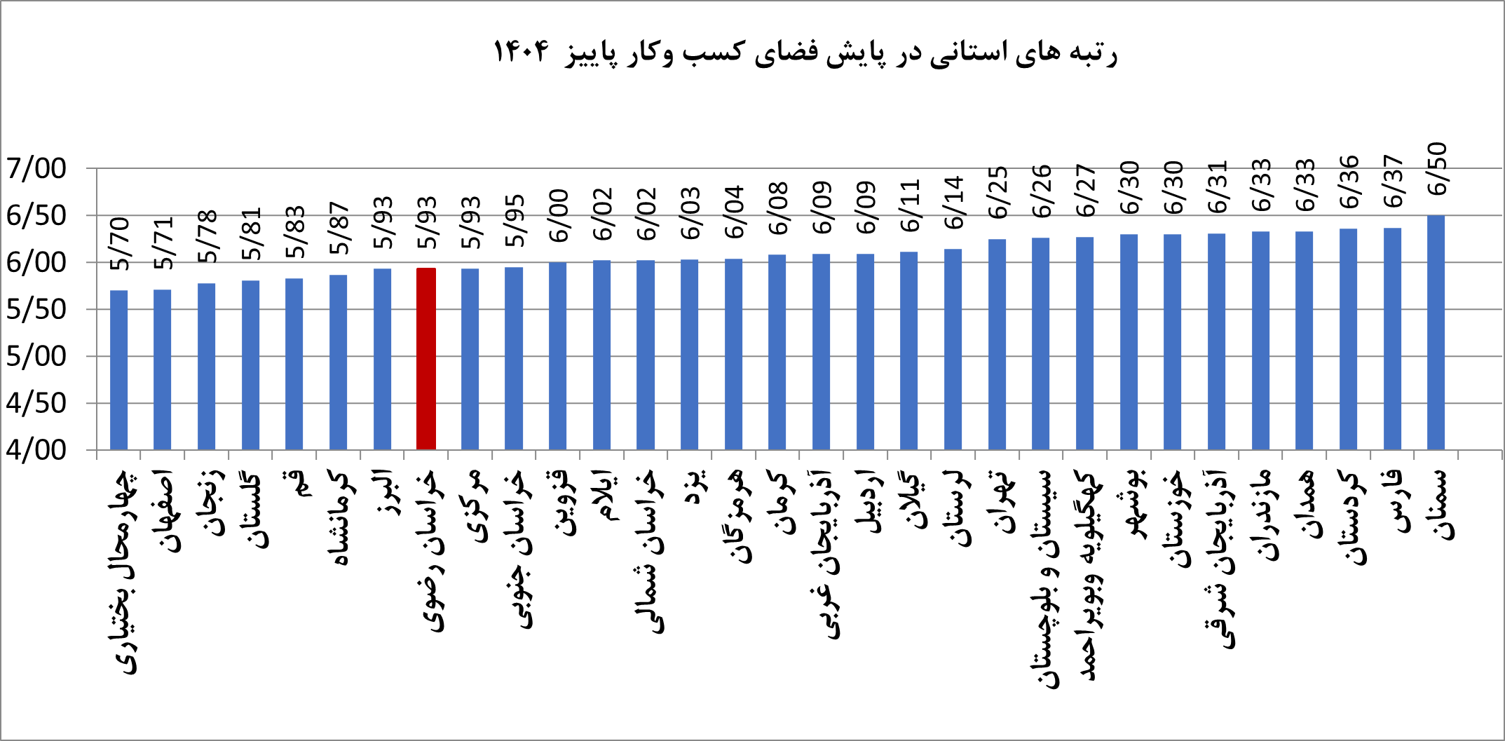 نتایج سی‌وهفتمین دوره پایش ملی محیط کسب‌وکار نشان می‌دهد خراسان رضوی در پاییز ۱۴۰۴ با ثبت شاخص ۵.۹۳ (نمره 10 بدترین عدد در ارزیابی  است)، علاوه بر تجربه افت ۸.۰۱ درصدی نسبت به تابستان، جایگاه نخست خود در فصول گذشته را نیز از دست داده و به رتبه هشتم کشوری تنزل یافته است. این در حالی است که این استان در بهار و تابستان ۱۴۰۴ رتبه اول کشور را در اختیار داشت.