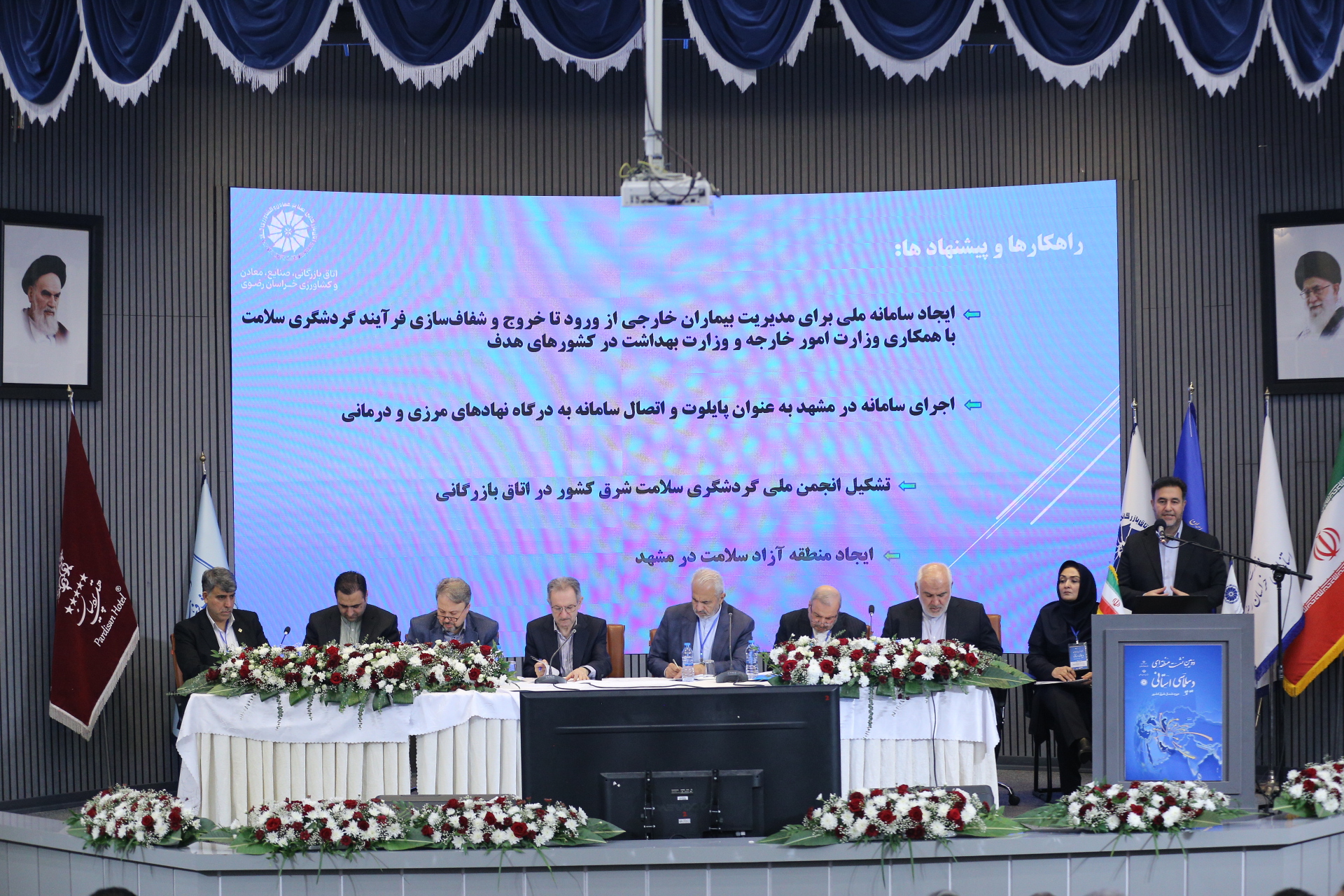 در دومین روز از دومین نشست منطقهای دیپلماسی استانی حوزه شمال شرق کشور، دو پنل تخصصی با عناوین «سیاست همسایگی توسعه زیرساختهای حملونقل، ترانزیت، گمرک و انرژی» و «دیپلماسی گردشگری زیارت و سلامت» با حضور وزیر میراث فرهنگی، گردشگری و صنایع دستی، سرپرست معاونت توسعه مدیریت و منابع گمرک ایران، رئیس اتاق بازرگانی خراسان رضوی، سفرای ایران در کشورهای همسایه، استانداران خراسان شمالی و جنوبی و جمعی از فعالان حوزه حملونقل در محل هتل پردیسان برگزار شد.